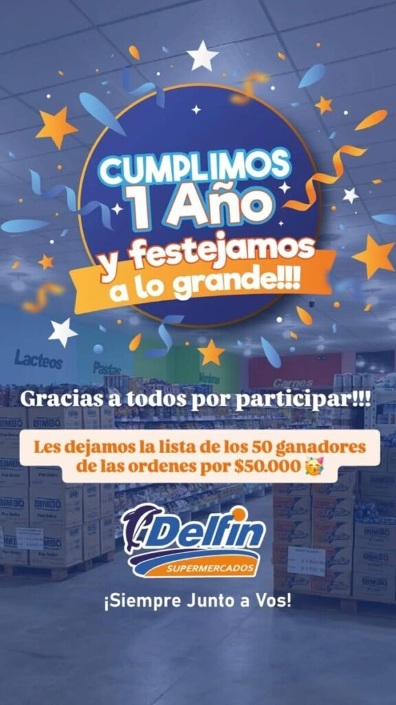 El último sábado, Supermercados Delfin celebró su primer aniversario en sus nuevas dependencias sobre Ruta Provincial Nº 6 con un importante sorteo destinado a agradecer la fidelidad de sus clientes. En el marco de este festejo, la firma realizó el sorteo de 50 órdenes de compra por un valor de 50 mil pesos cada una, (Leer mas…)