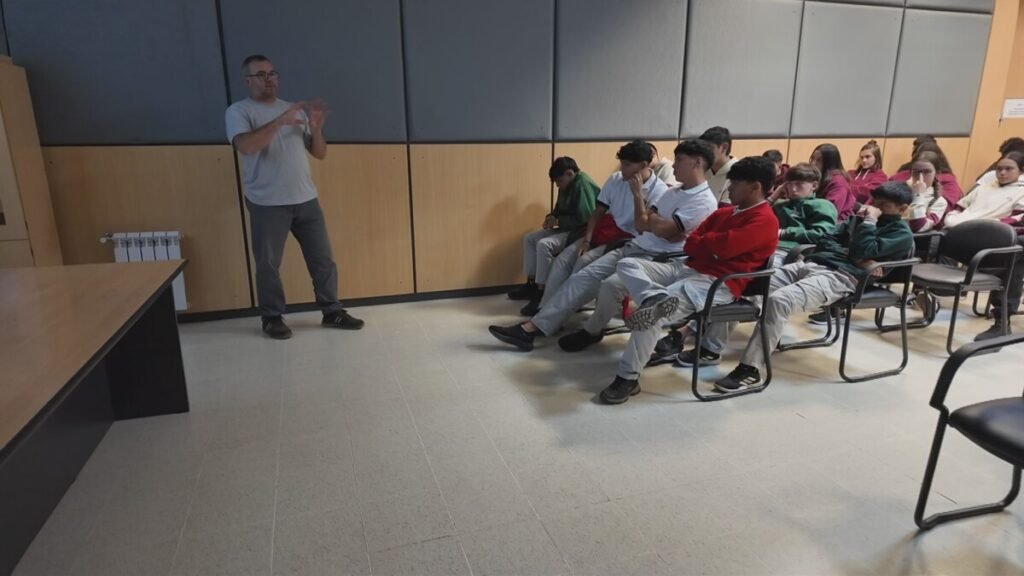 La primera etapa del programa se desarrolló este jueves en el establecimiento educativo, donde el ingeniero Gerardo Cingolani brindó una exposición sobre el funcionamiento de la empresa. Explicó cómo se organiza, desde la recepción de materia prima hasta la obtención del producto final, incluyendo áreas clave como administración, ventas, producción y posventa.