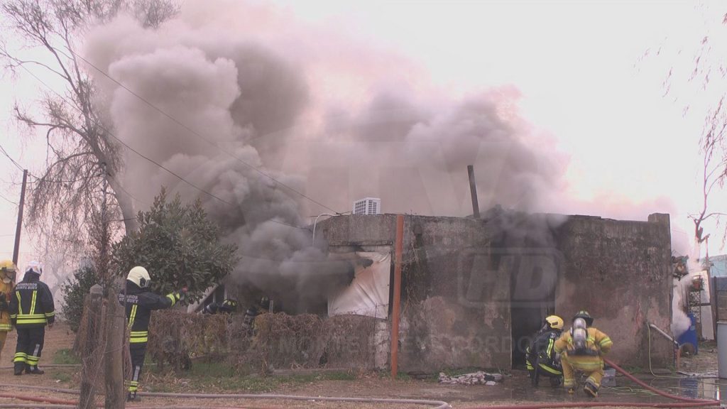 Por causas a establecer en la tarde de este sábado fueron convocados los Bomberos Voluntarios para controlar el siniestro en calle 25 de Mayo frente al predio deportivo del Club Matienzo pero rápidamente las llamas ganaron el interior de la casa y consumió la totalidad de los elementos causando en una habitación la caída del techo.