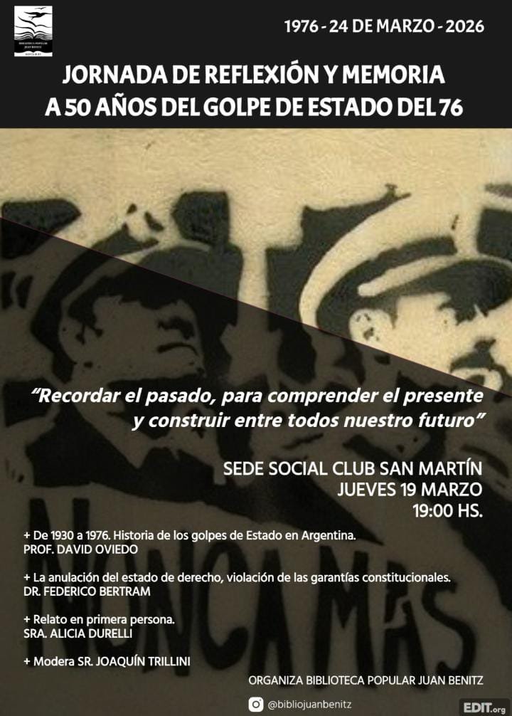La Biblioteca Juan Bénitz propone jornada de reflexión y memoria a 50 años del golpe de Estado de 1976