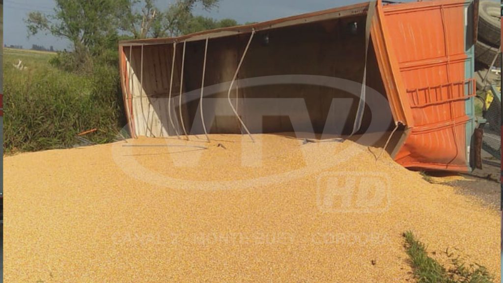 El tránsito estuvo interrumpido algunos minutos en ambas manos, pero se restableció en un plazo corto de tiempo por la rápida labor de los servidores públicos que primero debieron levantar el acoplado, luego sacarlo de la ruta y después limpiar el cereal desparramado para liberar el tránsito.